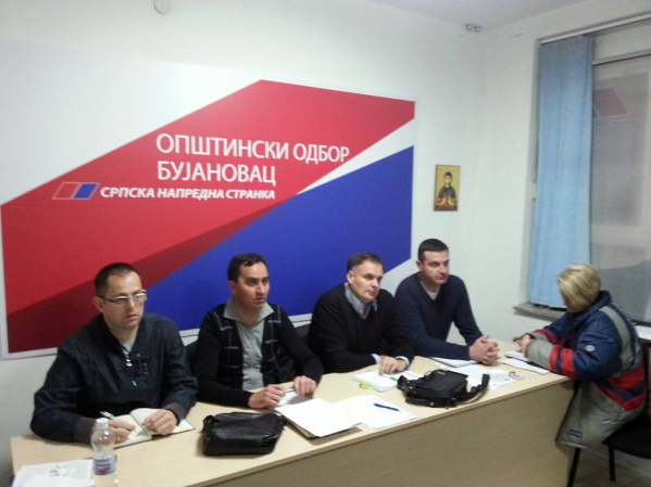 Општински одбор Српске напредне странке Бујановац, одржао је састанак дана 05.03.2016.године. Председник Ненад Митровић је председавао састанком. Сва пажња је усмерена ка изборима који ће се одржати 24. априла. Максимално озбиљно се ради на сваком детаљу, како би се све обавезе које стоје пред нама спровеле на најбољи могући начин.
